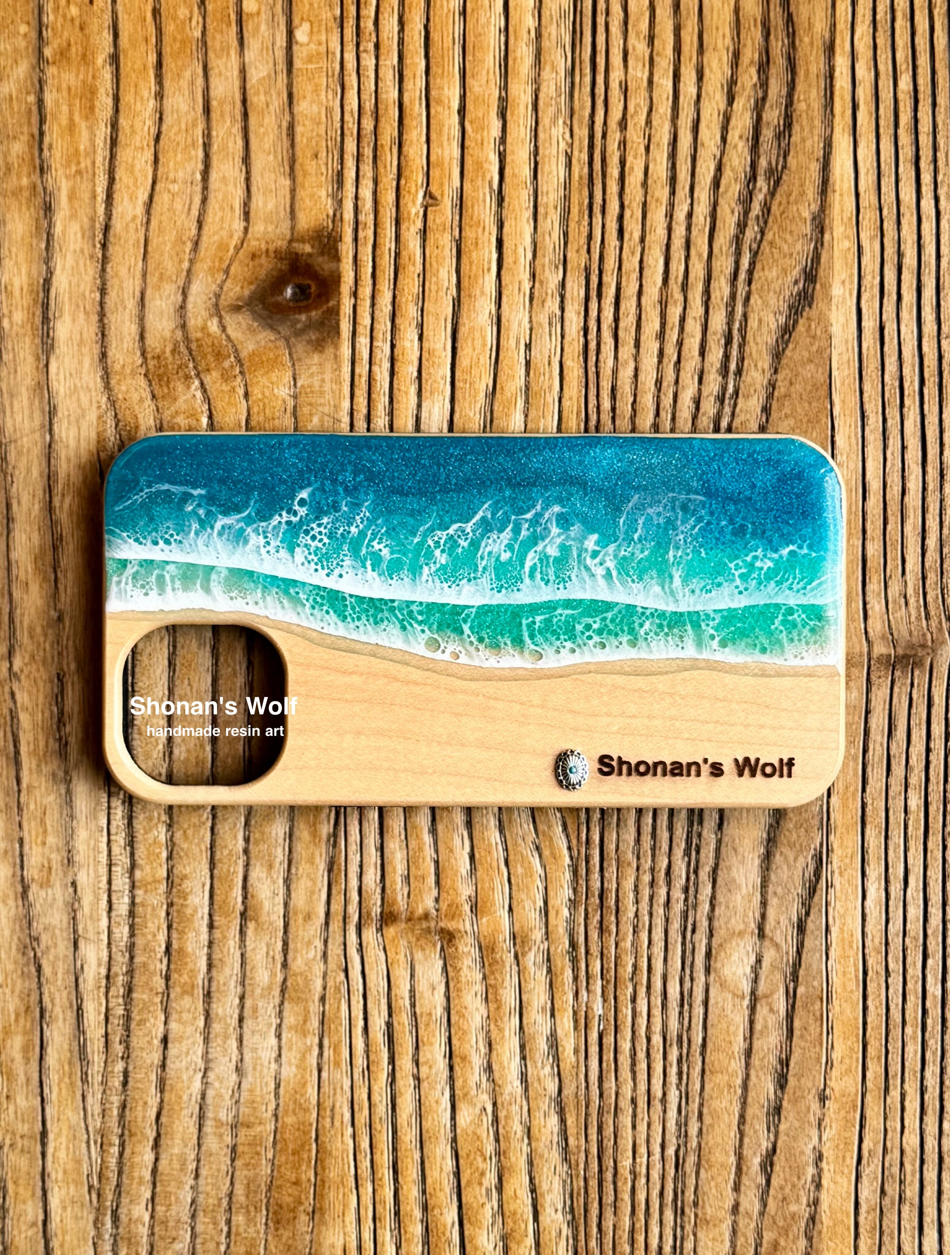 天然木と透明なレジンを組み合わせることで、海のような神秘的な模様が生まれ、あなたのiPhoneを個性的に演出します。