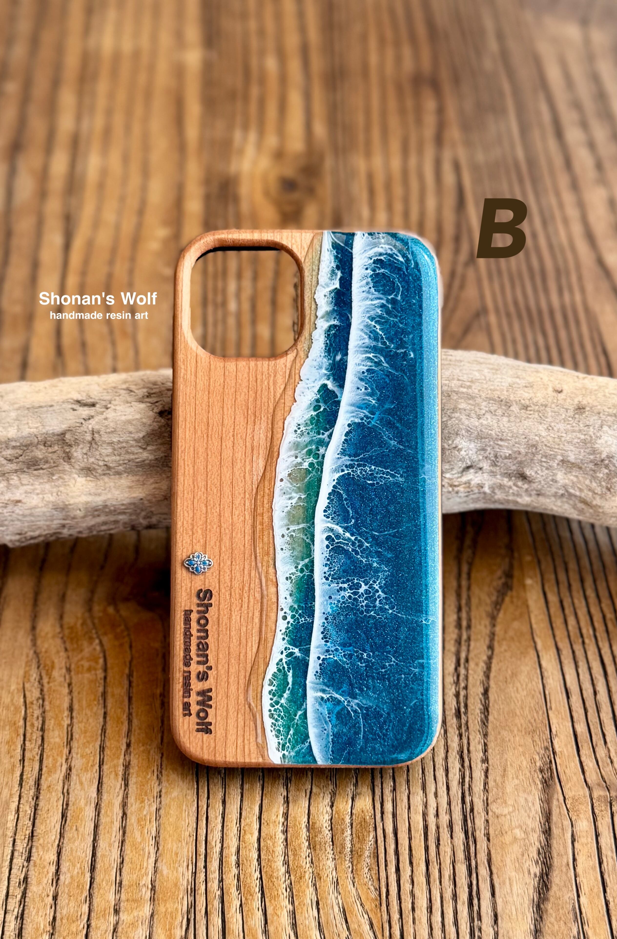 天然木と透明なレジンを組み合わせることで、海のような神秘的な模様が生まれ、あなたのiPhoneを個性的に演出します。