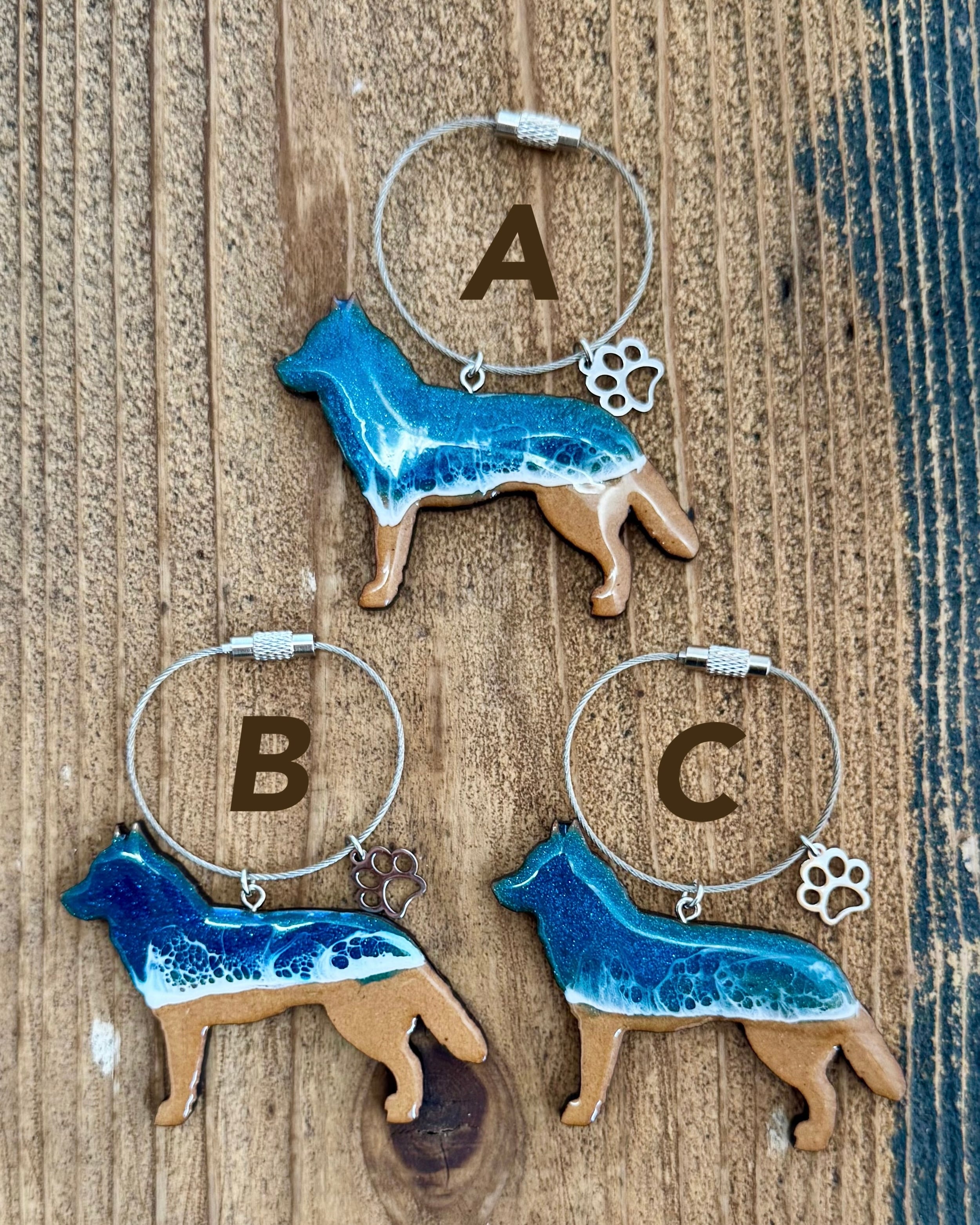 海をぎゅっと閉じ込めたような、レジンのドッグキーリング。