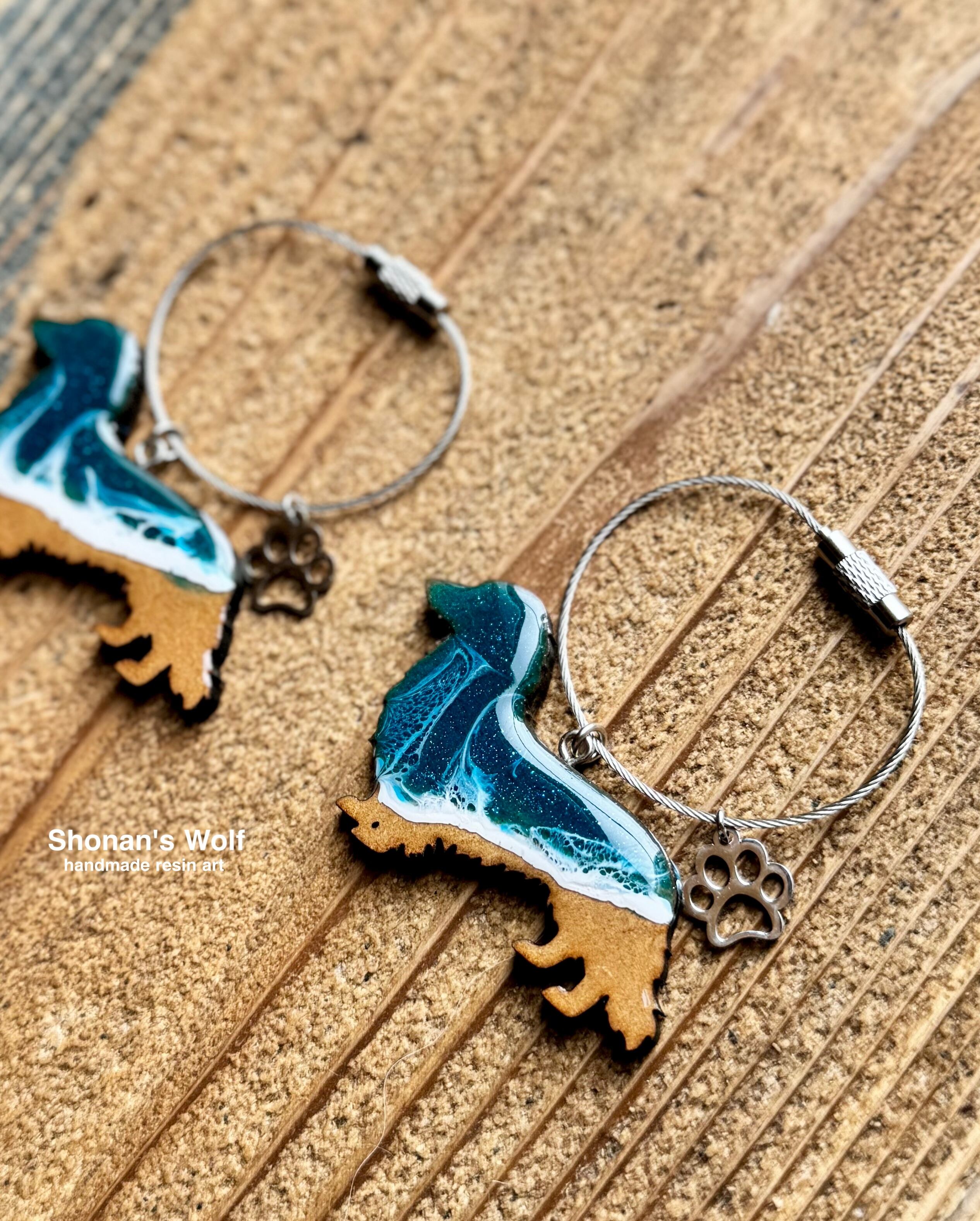 海をぎゅっと閉じ込めたような、レジンのDogキーリング。