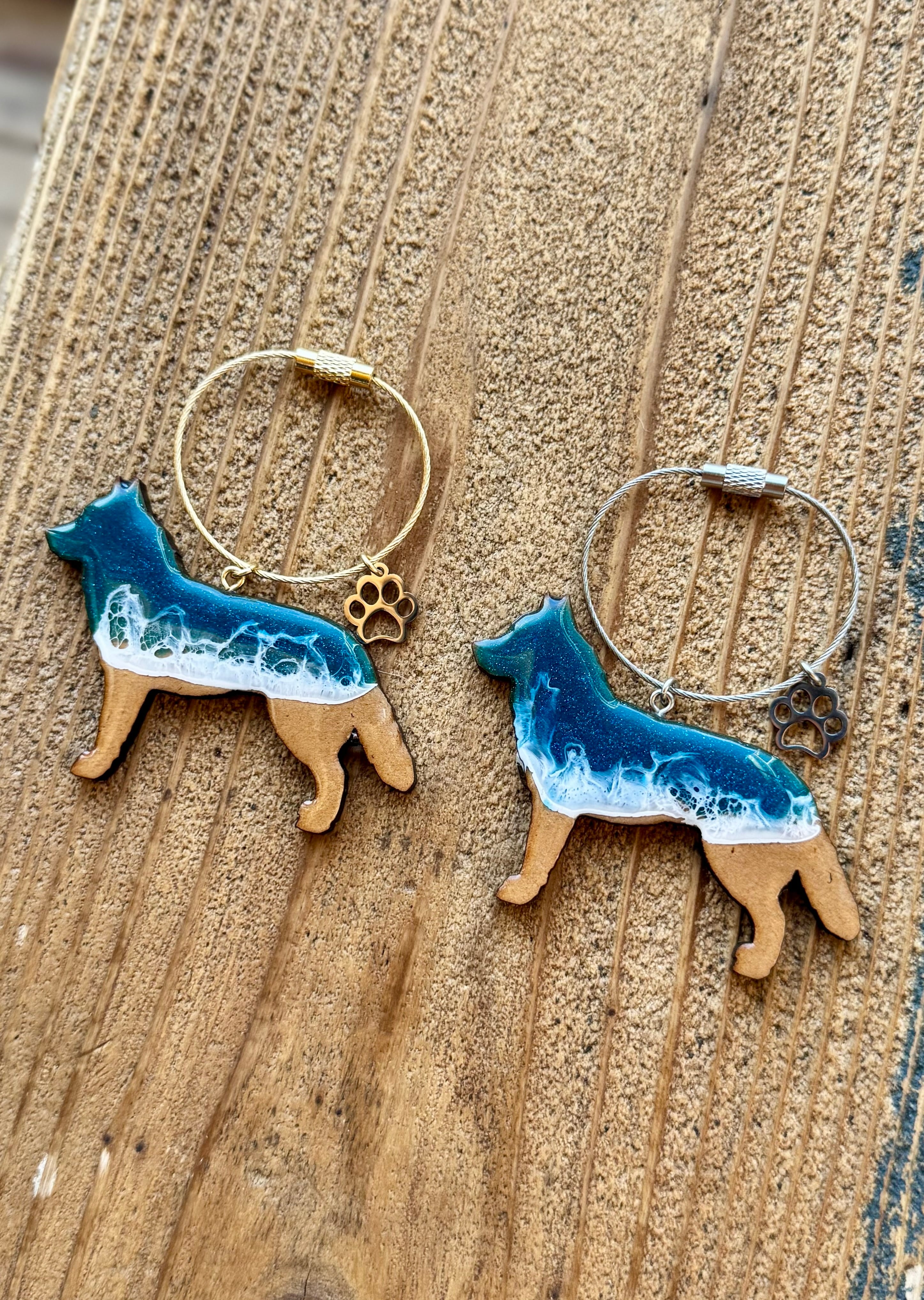 海をぎゅっと閉じ込めたような、レジンのドッグキーリング。