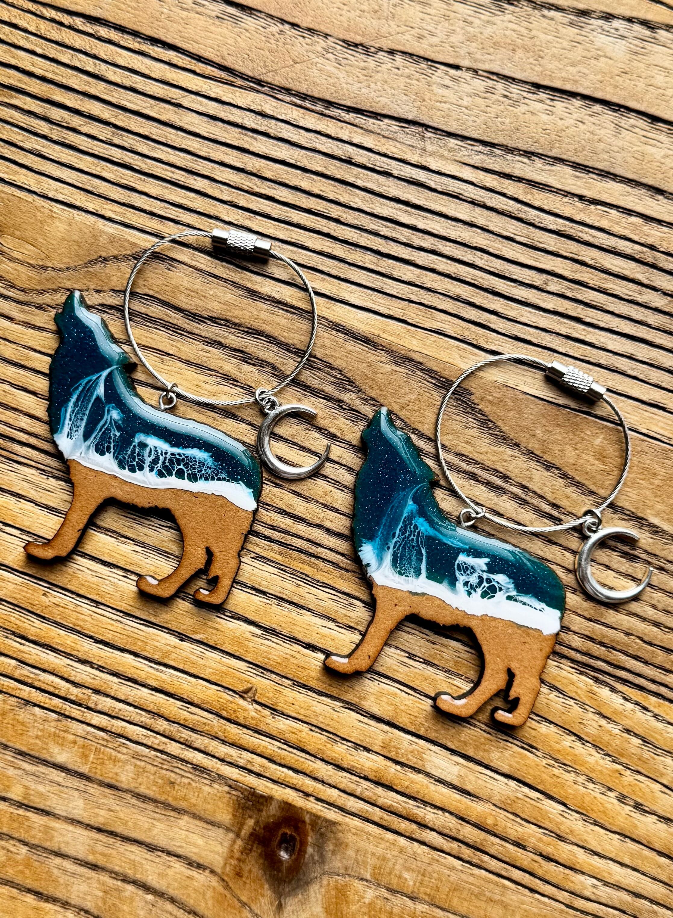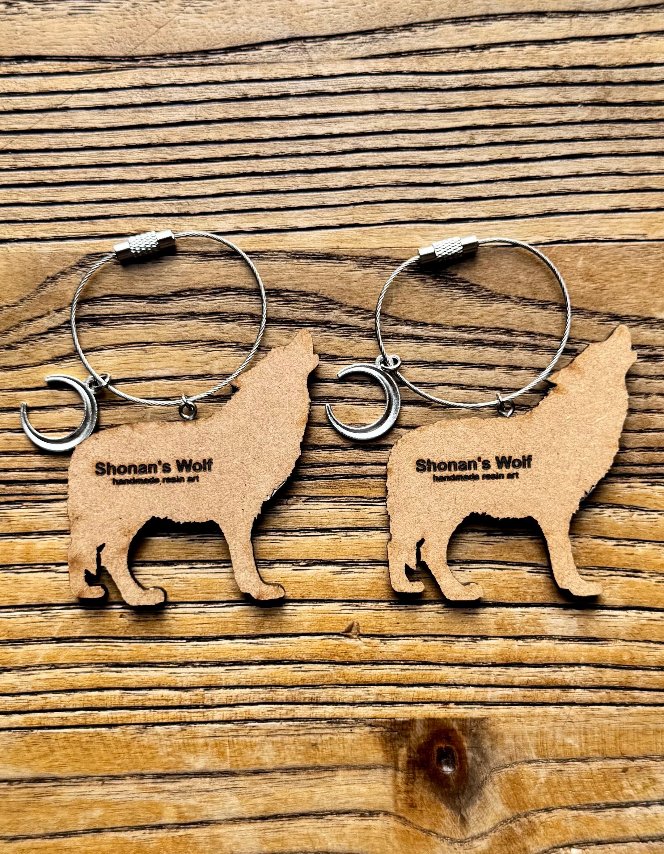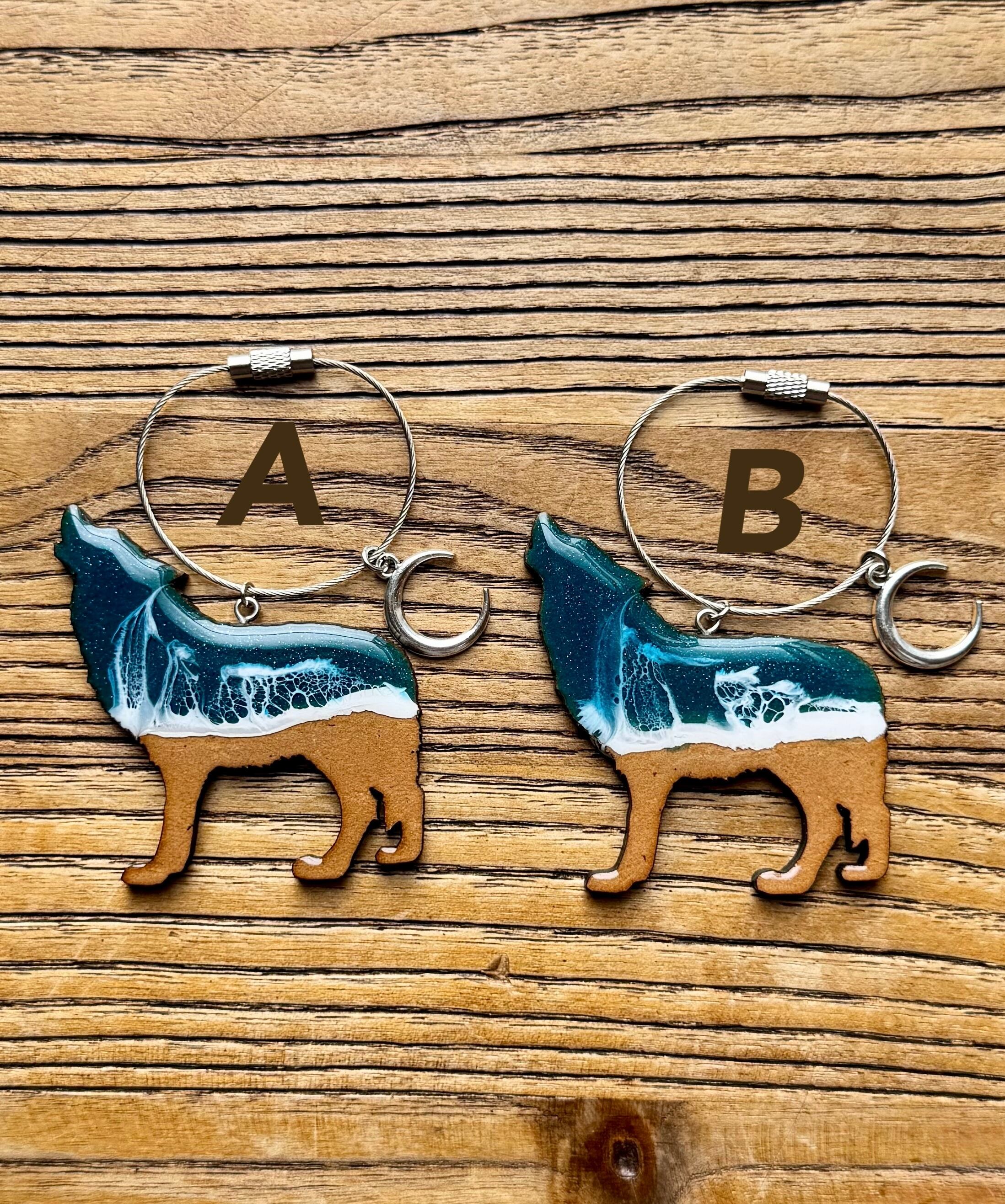 狼のシルエットにレジンで海をぎゅっと閉じ込めたキーリングです。