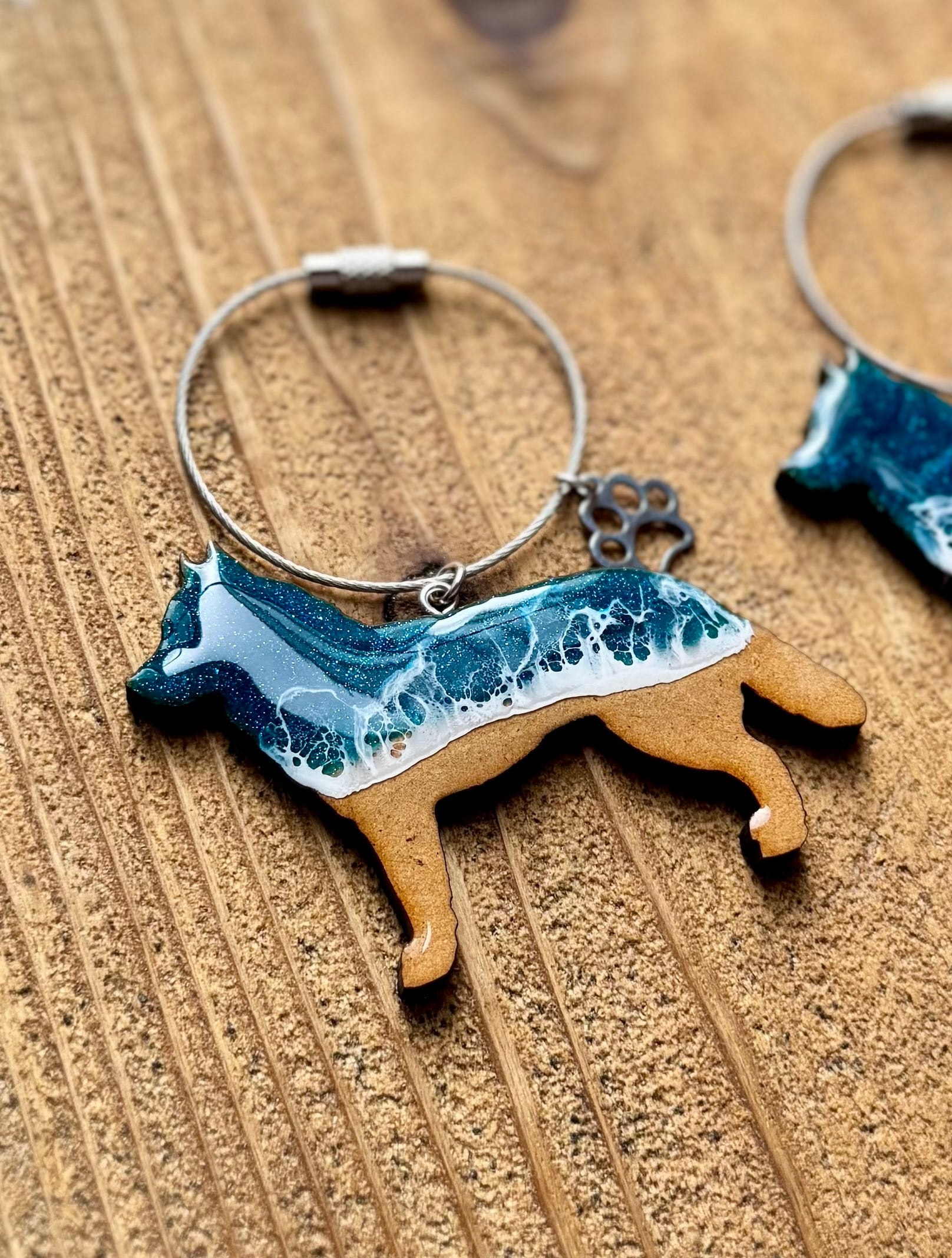 オーシャンアートで仕上げたハスキーのキーリングꕤ