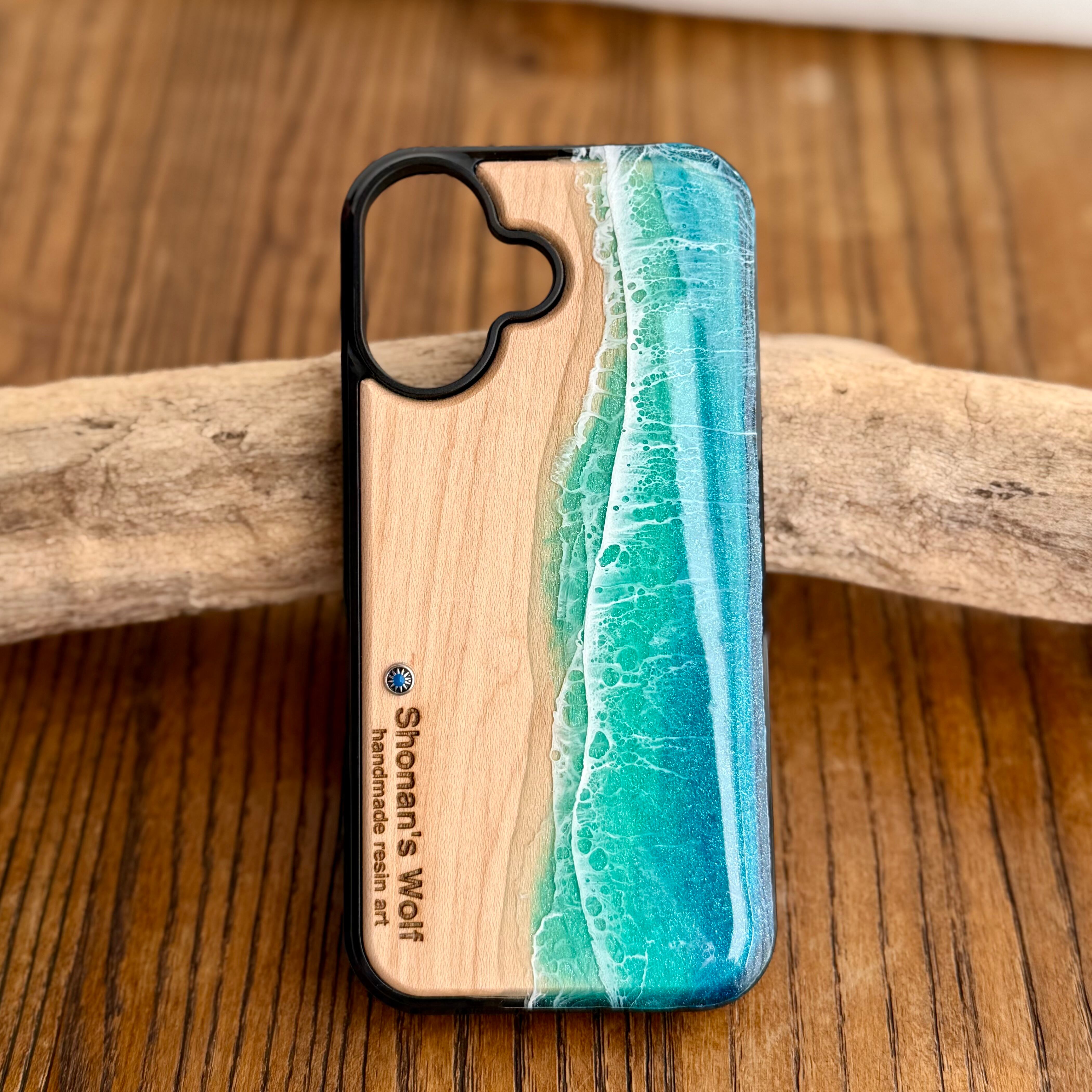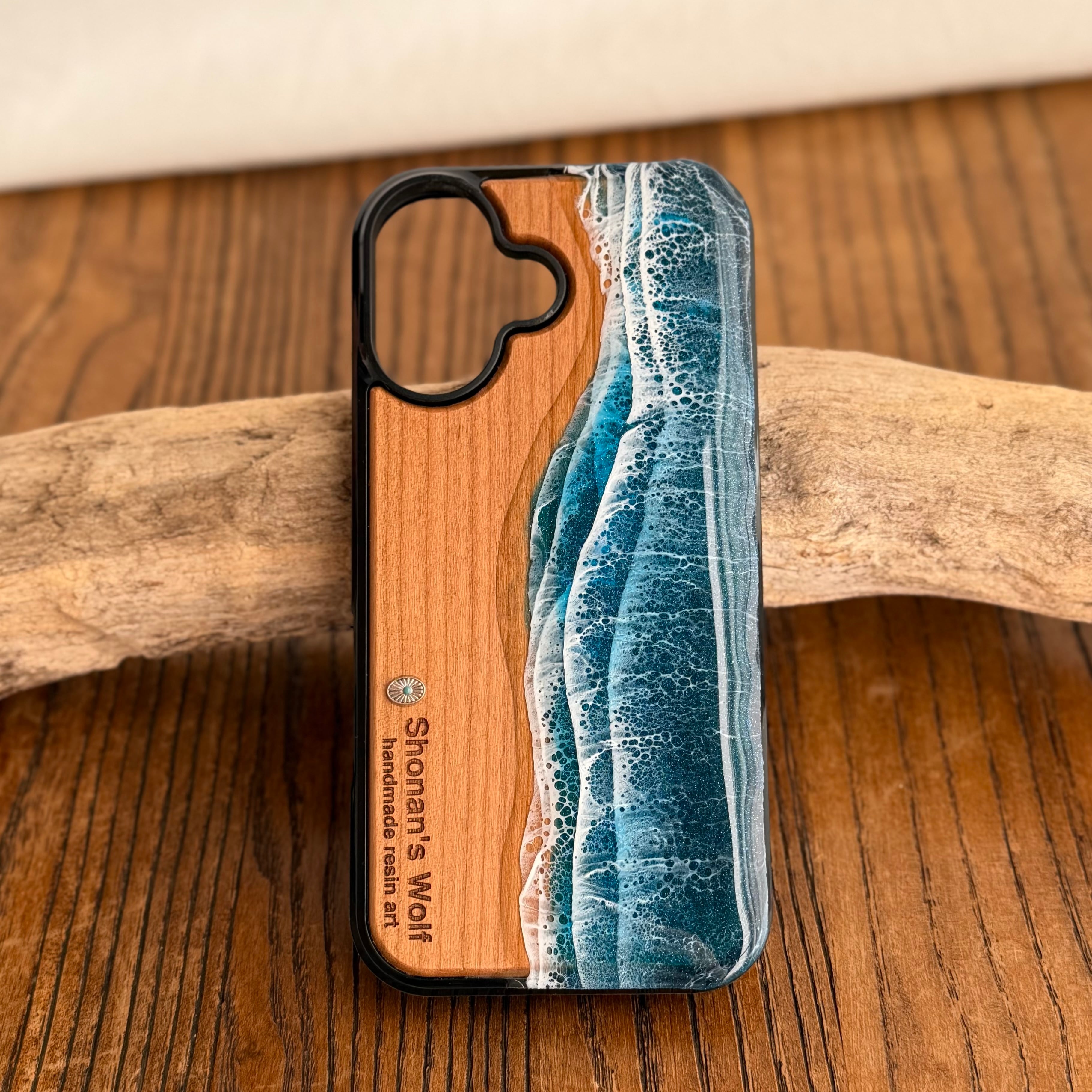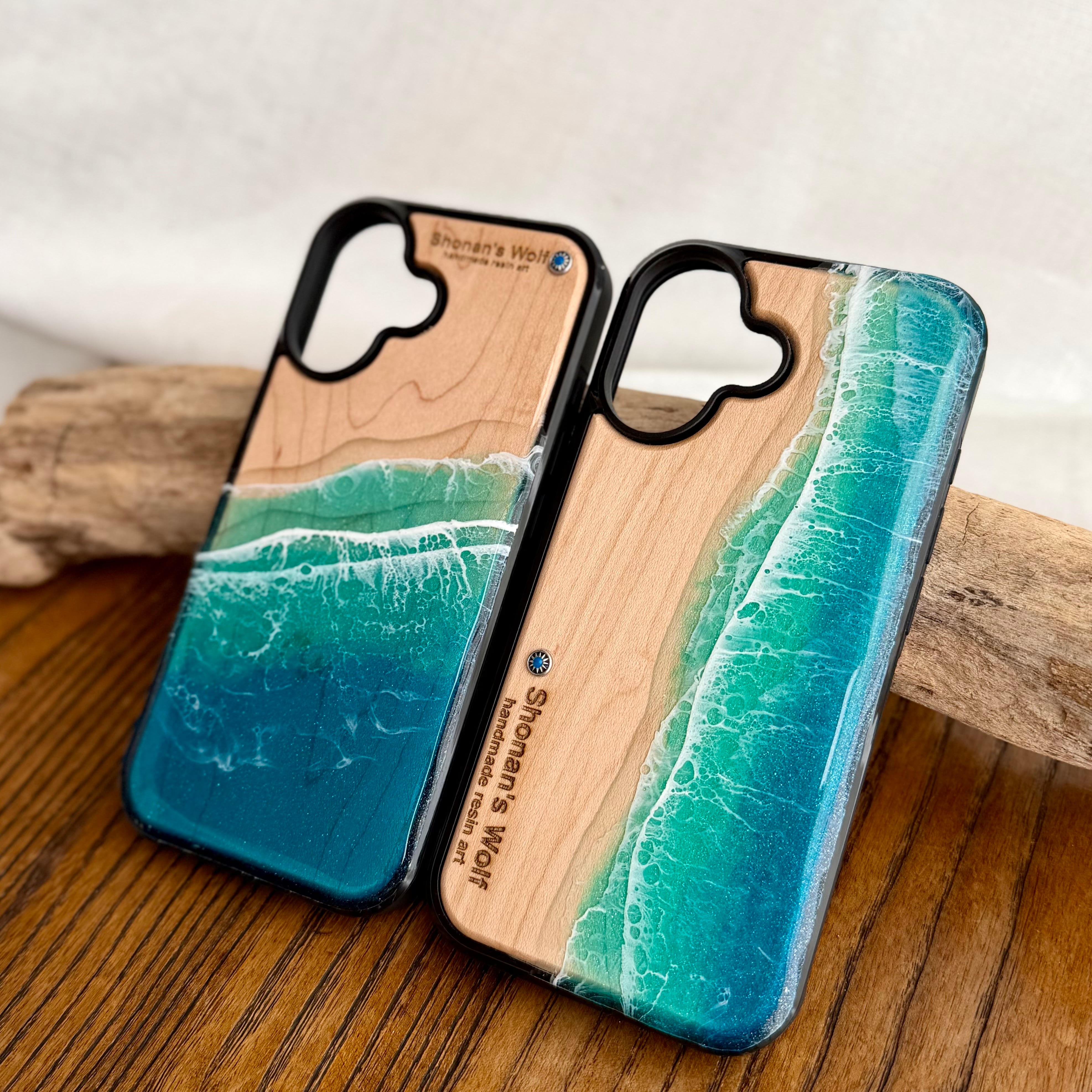 天然木と透明なレジンを組み合わせることで、海のような神秘的な模様が生まれ、あなたのiPhoneを個性的に演出します。