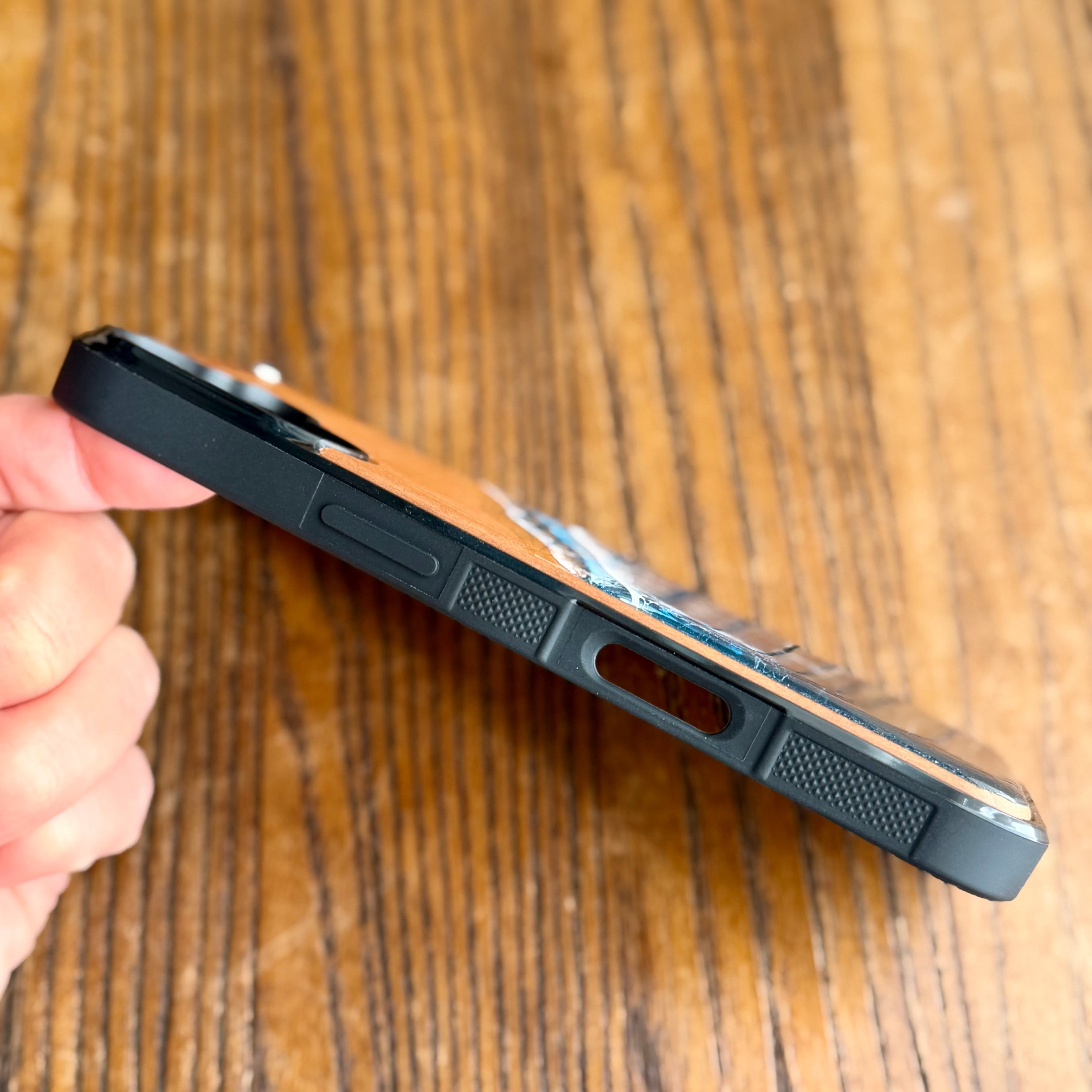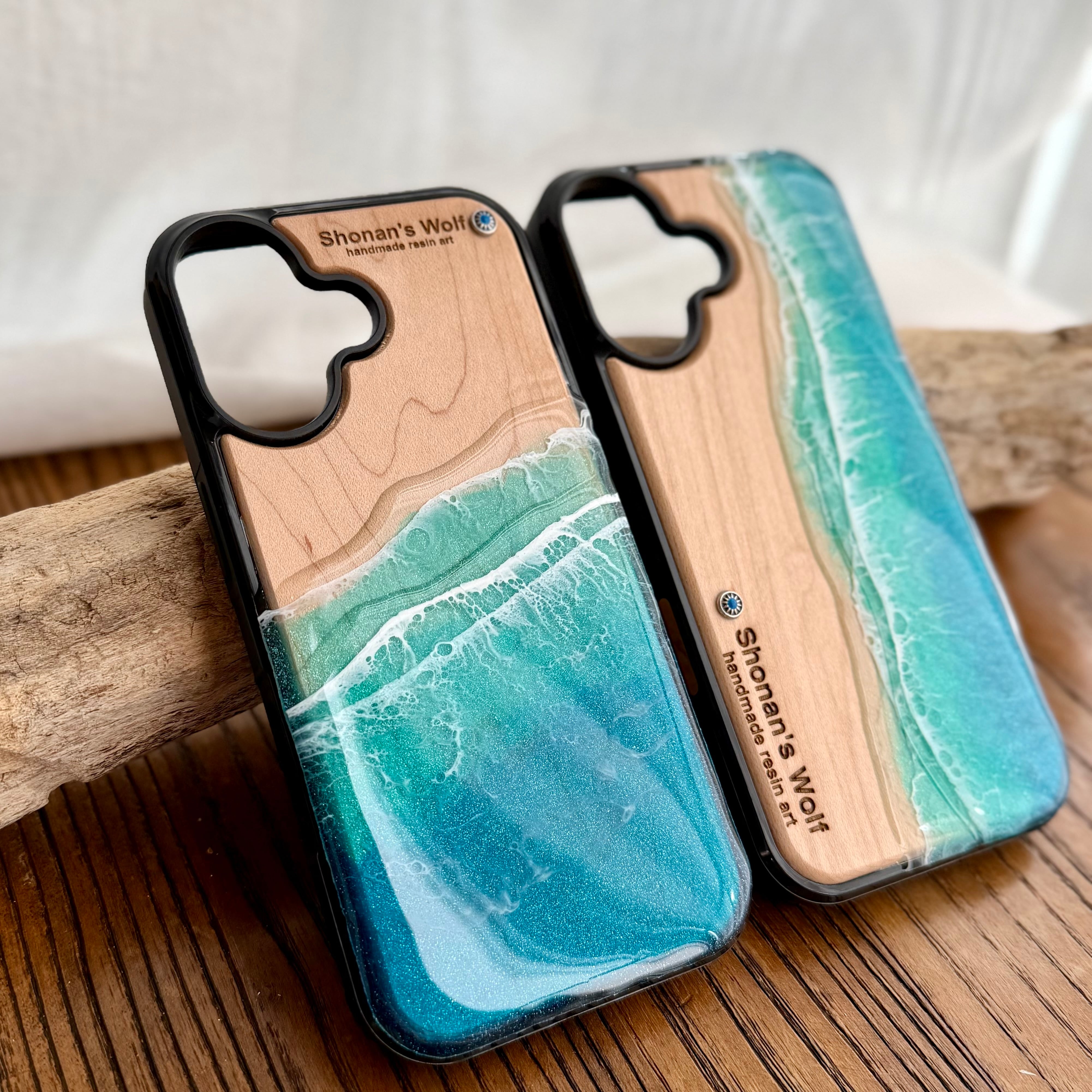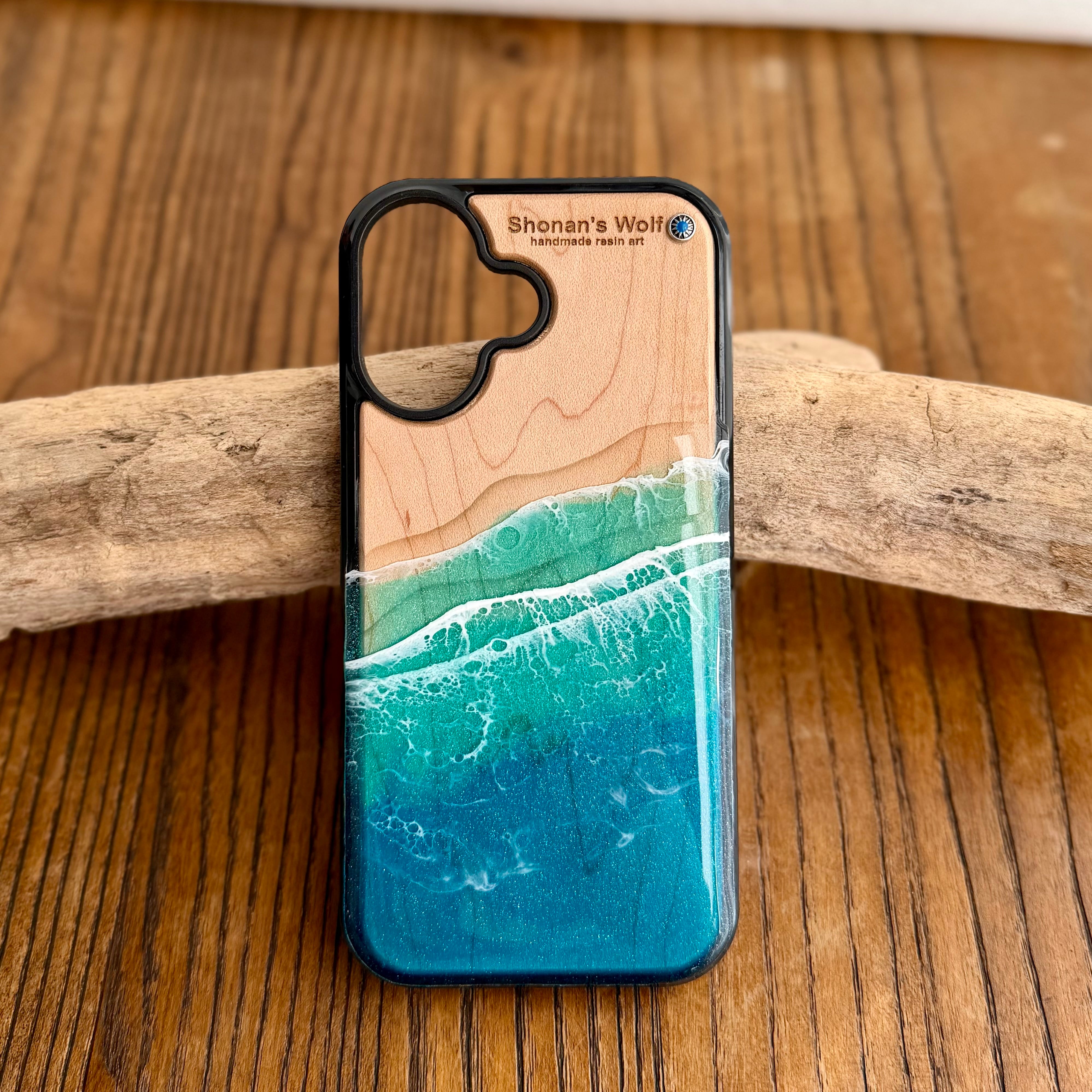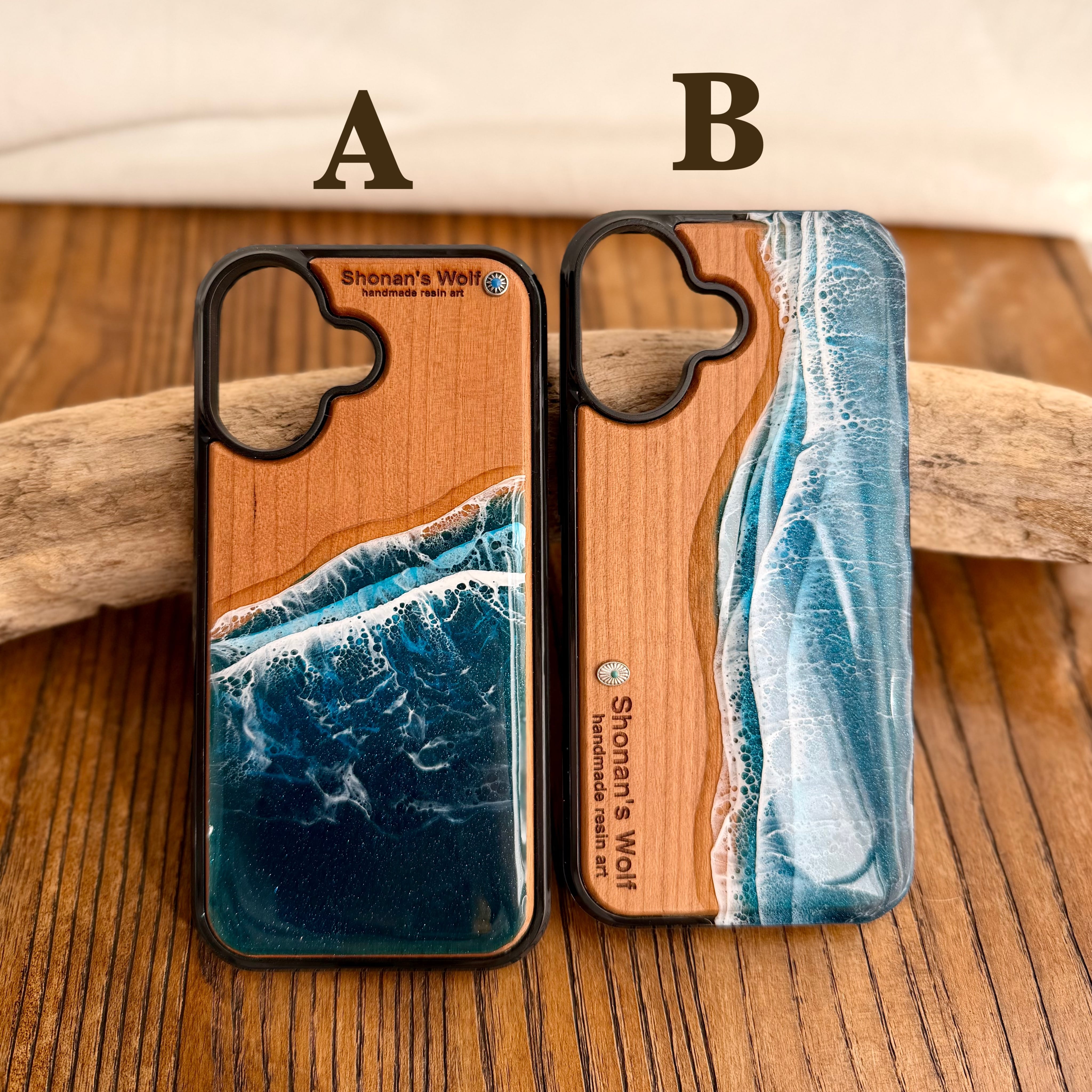 天然木と透明なレジンを組み合わせることで、海のような神秘的な模様が生まれ、あなたのiPhoneを個性的に演出します。