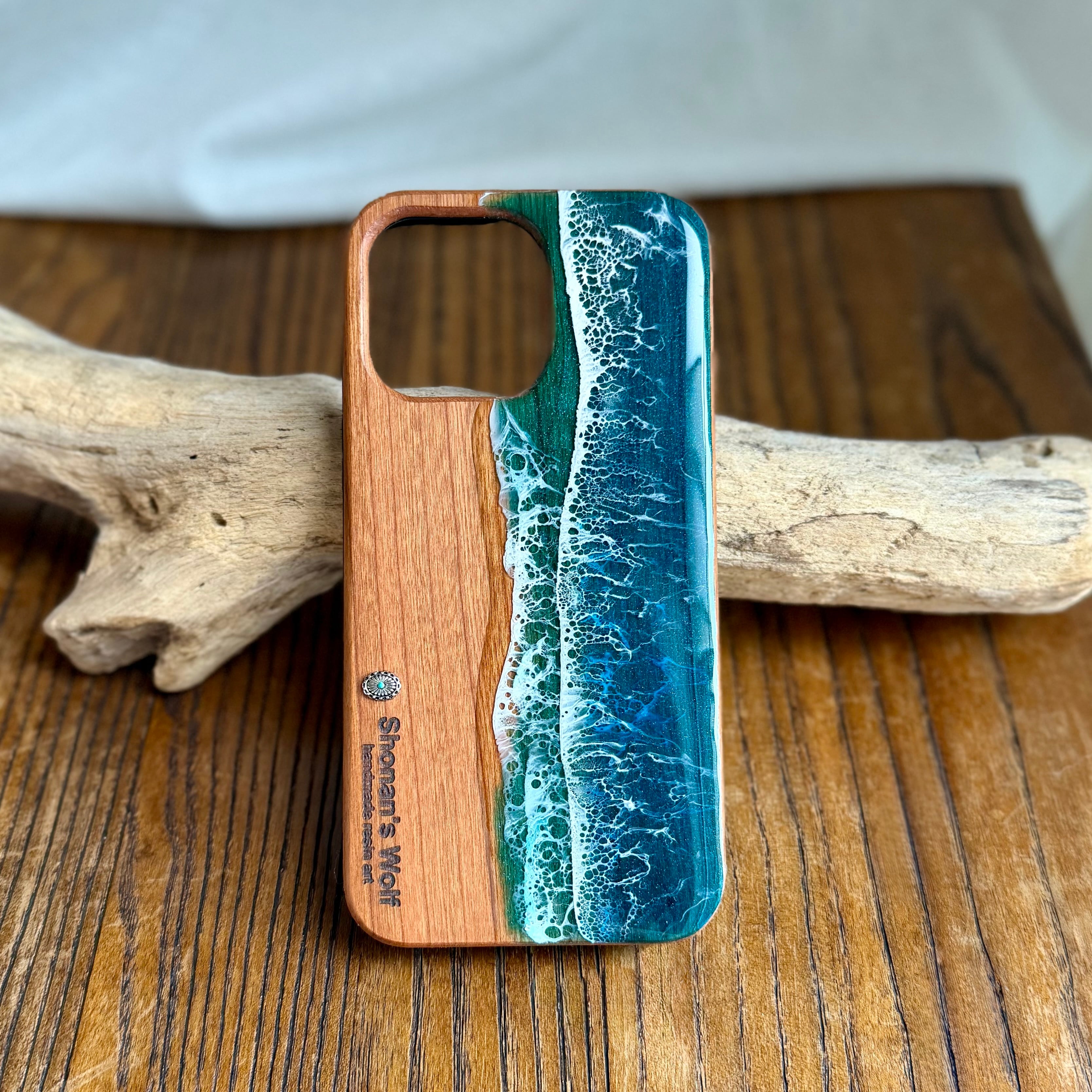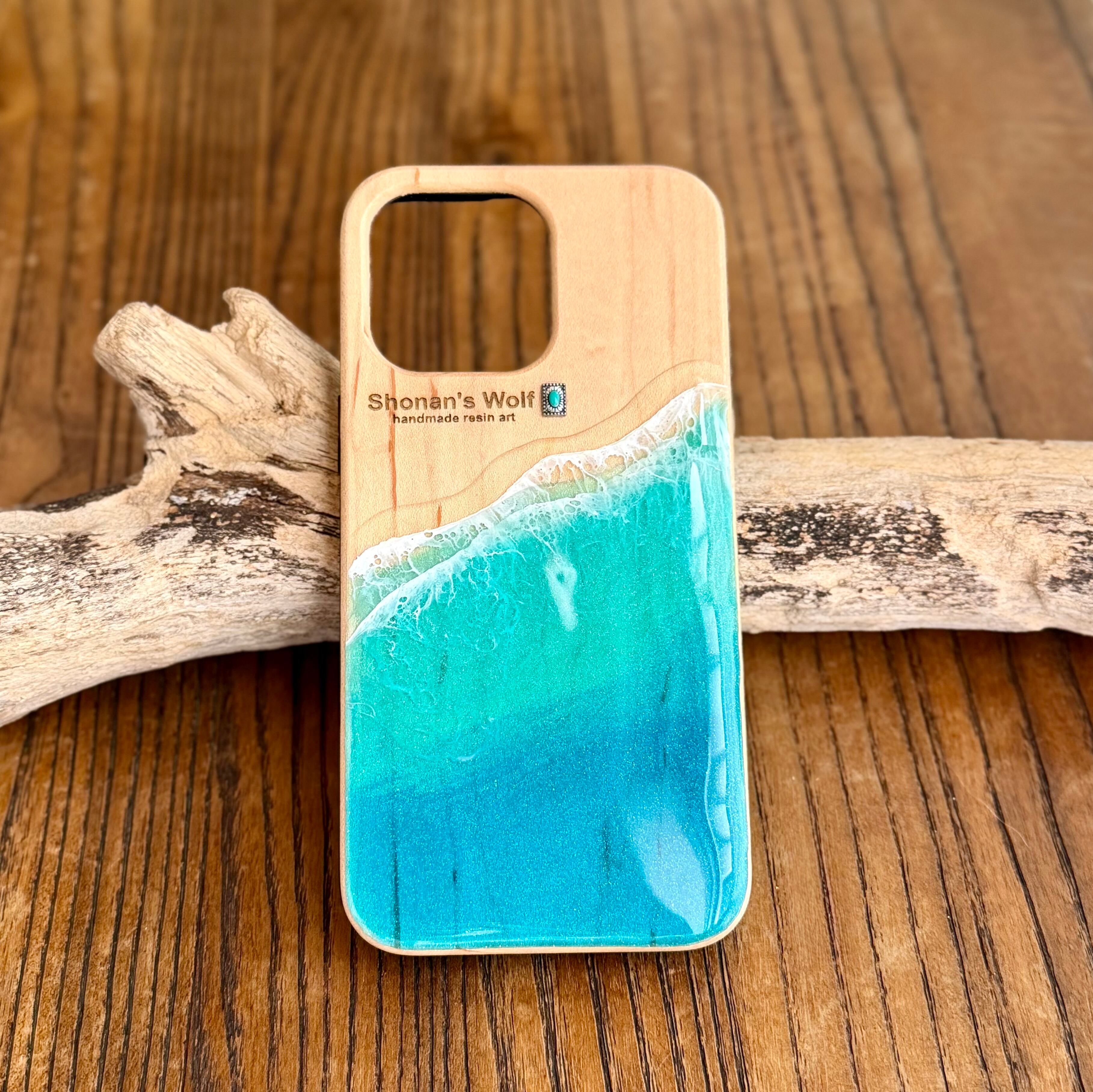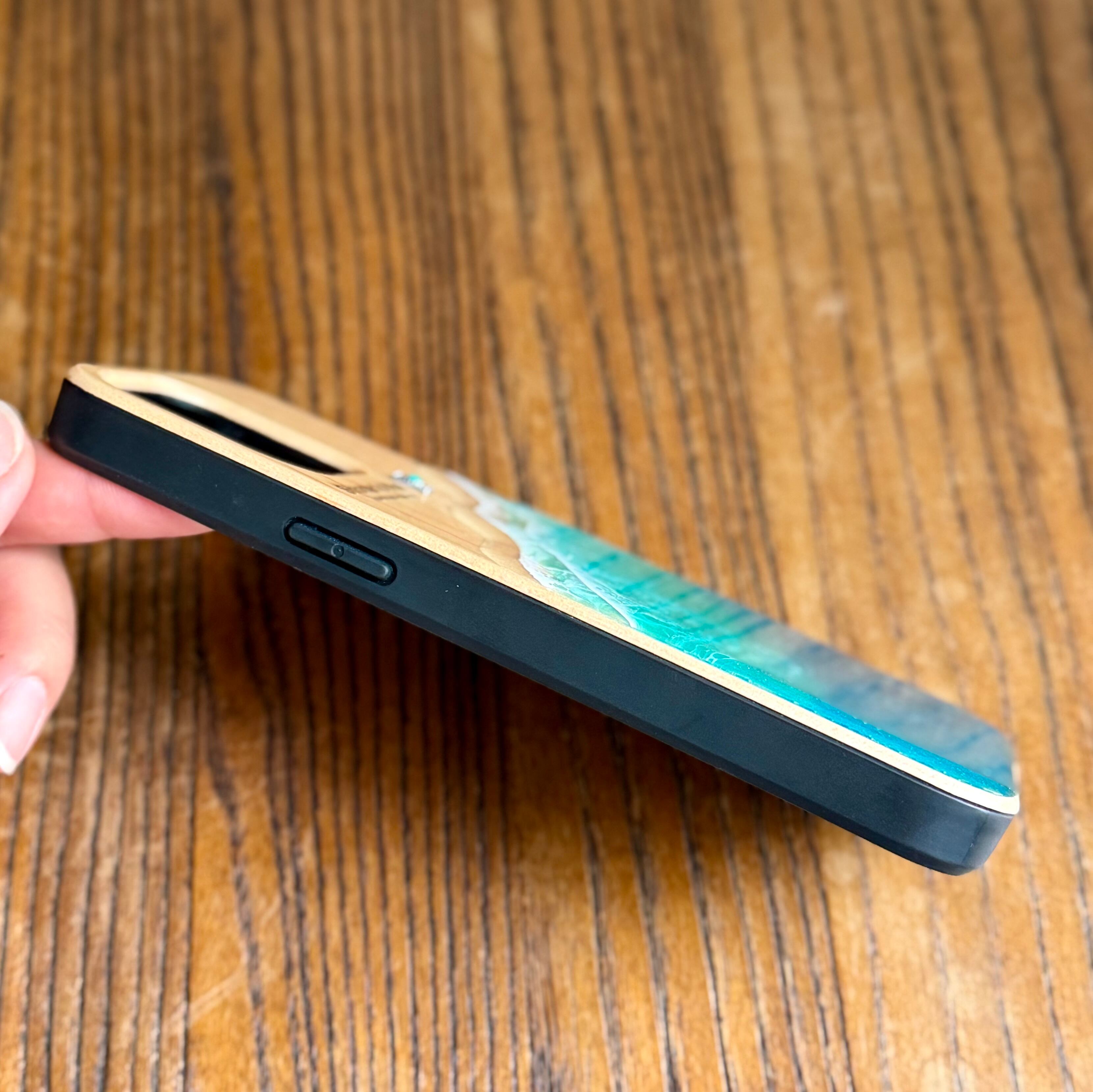 天然木と透明なレジンを組み合わせることで、海のような神秘的な模様が生まれ、あなたのiPhoneを個性的に演出します。
